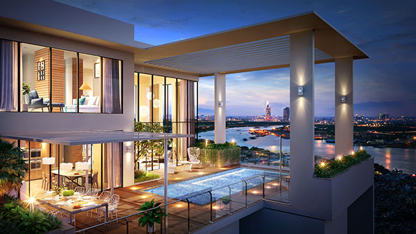 The CBD view and Saigon river view from the majestic Sky Villa—where the sky is literally the limit
