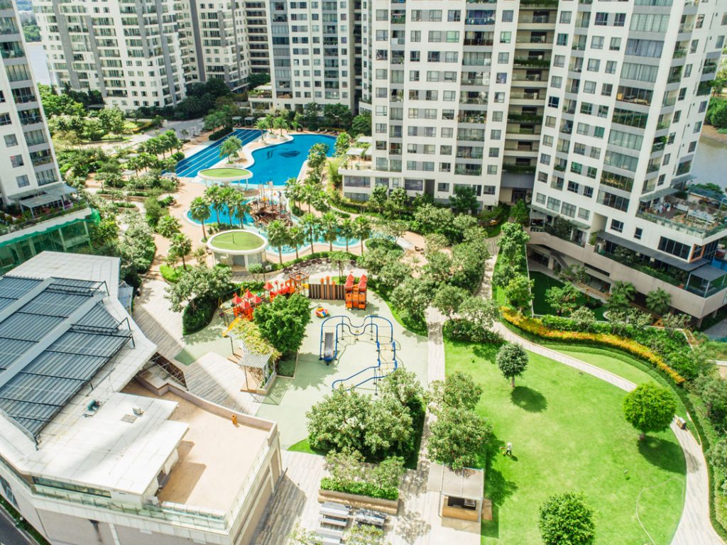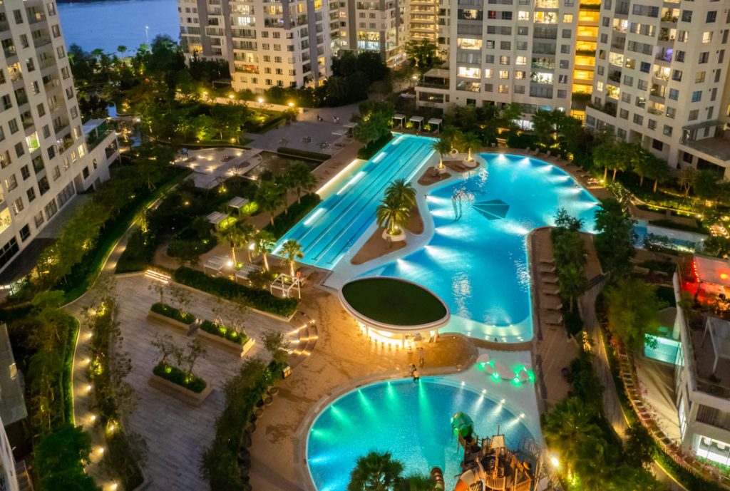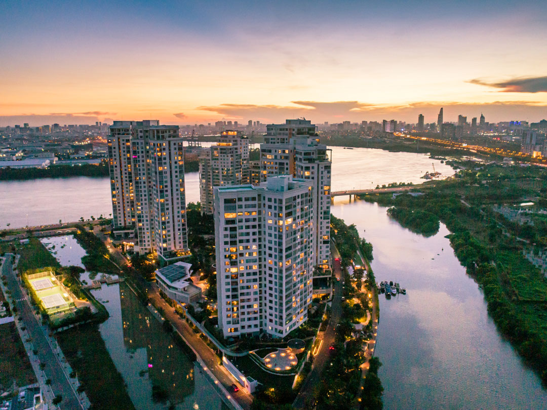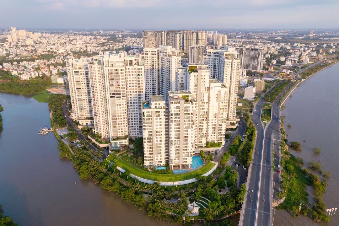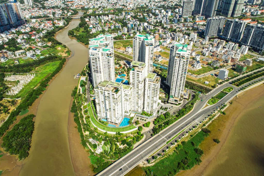 A unique luxury residence located in the only island at the center of District 2, Diamond Island offers an exclusive wellness living concept where a strategic location and premium facilities meet the essence of nature. This residence features unbeatable panoramic views of the CBD and the river, suspended between the water and sky.